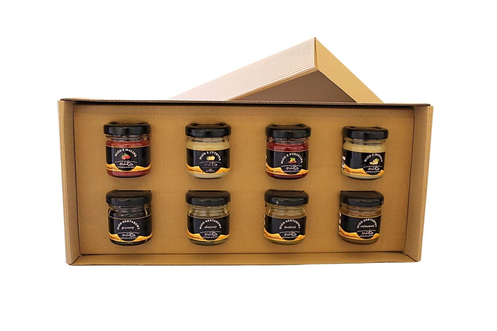 To doskonały wybór na prezent, elegancki upominek firmowy, a także świetny sposób, by poznać różnorodność smaków miodu w wyjątkowej, „bombonierkowej” formie. Idealny dla osób, które cenią naturalne produkty, jakość i niepowtarzalność.